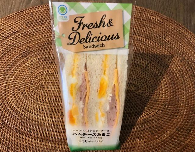 ハムとチーズ、そしてたまごが楽しめる「ハムチーズたまごサンド」248円(税込)。
