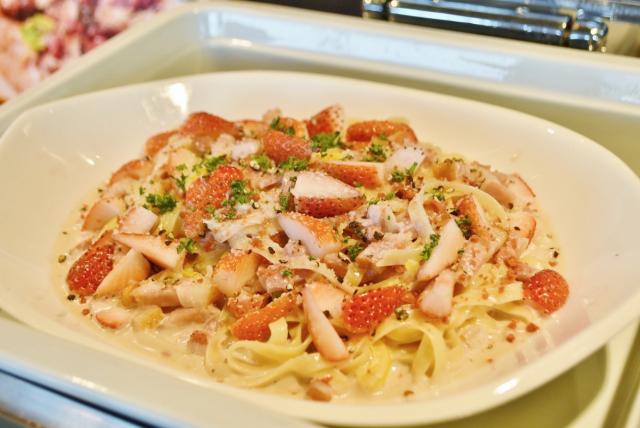 「ゴルゴンゾーラといちごのクリームパスタ」は、フィットチーネによく絡むゴルゴンゾーラチーズソースと、いちごの爽やかな香りと酸味がマッチしたパスタです。