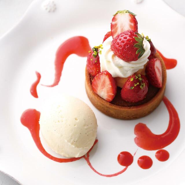 そのほか、桜あんのクリームを絞って仕上げた「苺とさくらの春色モンブラン」、香ばしく焼き上げたタルトとディプロマットクリームに苺をあわせた「苺のタルト バニラアイス添え」が、フェアの前半と後半にリレー式で登場します。