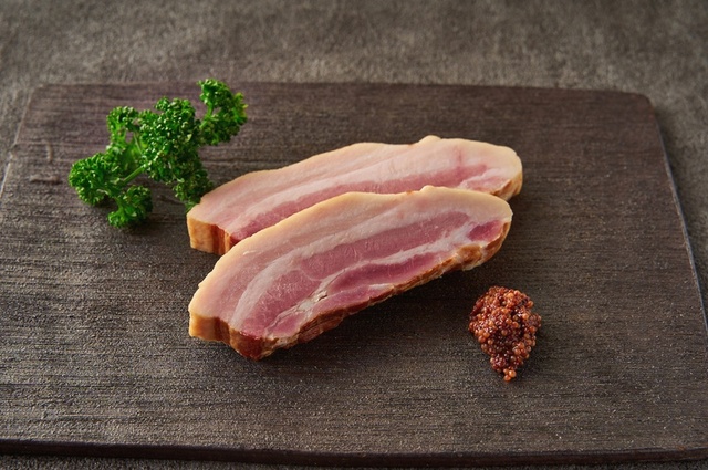3月 黒豚ベーコン200g、白金豚ソーセージ7本、粒マスタード付き