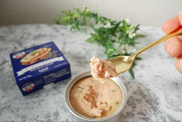 見た目やにおいはツナのような感じですが、スプーンですくってみるとやわらかくなめらかなペースト状。