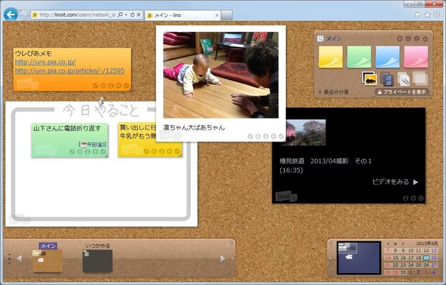 モニターにペタペタと付箋を貼っている人も多いはず。ちょっとしたメモに使えるので便利ですよね。またデスクトップ上で使える付箋アプリなんてのもあります。そしてこちら「lino」はブラウザー内で使える付箋Webアプリです。