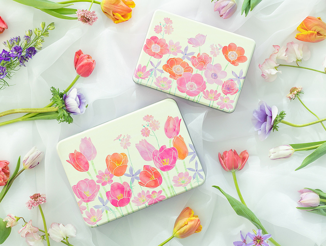 新商品「カドー ドゥ プランタンwithブーケ」は、「お花を贈るようにお菓子を贈る」をコンセプトに四季のお花を缶パッケージに描いた、ヨックモックの季節のギフト缶シリーズの春限定商品「カドー ドゥ プランタン」に、フラワーアーティストの前田有紀さんプロデュースのミニブーケがついたスペシャルギフトセットです。