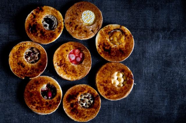 パイ生地を焼きあげるところだけでなく、特製カスタードクリームの絞りやフルーツのトッピングなどが、目の前で組み上げられています。