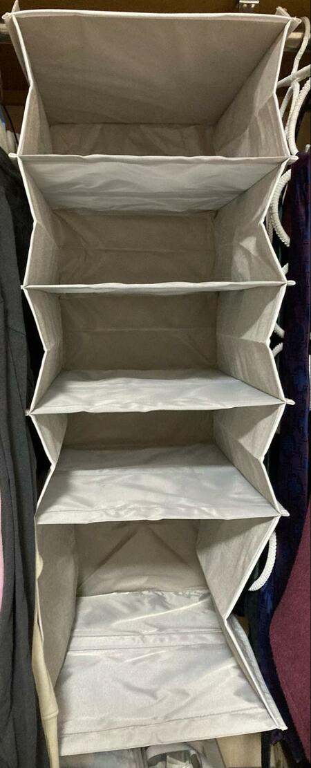 「吊り収納 プレッソ(5段)」は、クローゼットのポールに引っかけるタイプの収納です。