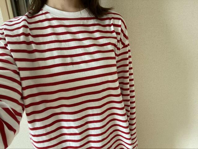 ユニクロのボーダーTほどではありませんが首元は広めなので、首回りは快適です。