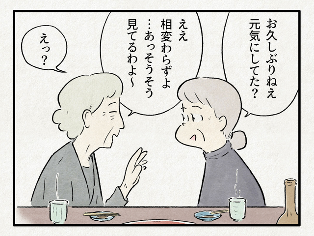 おじいさんとおばあさんのももたろう子育て奮闘記。第97話目のテーマは「熟年離婚(5)」です。おばあさん、友人宅での生活が始まりましたが、やはりおじいさんのことが気になってしまうようです。