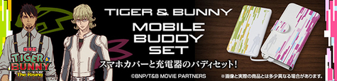 TVアニメ「TIGER & BUNNY」の主人公、鏑木・T・虎徹とバーナビー・ブルックス Jr.のふたりをイメージした手帳型スマートフォンカバーと携帯型充電器のセット『TIGER & BUNNY モバイルバディセット』が発売決定。プレミアムバンダイにて予約受付がスタートしました。