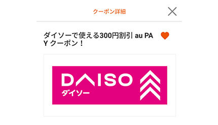au PAYでは3月31日まで「ダイソーで使える300円割引 au PAYクーポン!」を配布している。au PAYを使っているユーザーならだれでも利用できるお得なクーポンだ。