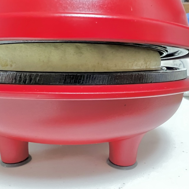 生地を流し込み、ふたを閉めた後は約3分待ちます。タイマー機能などはないので、自分で時間を計ってください。