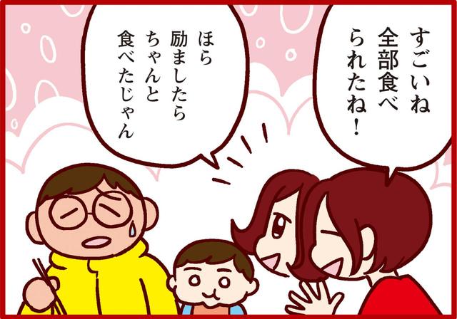 息子を褒めてご飯を食べさせたいさるころと、そうは思わないノダDで意見が対立…。