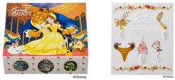 ケーキが入った専用BOXは、ベルと野獣が前後に並ぶプチケーキの詰め合わせ方を再現したデザイン。