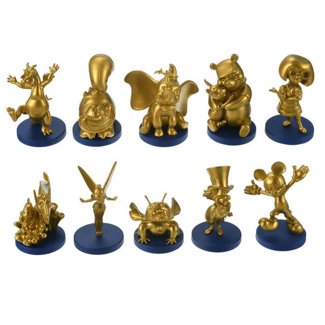ゴールドのキャラクターフィギュアは、ウォルト・ディズニー・ワールド内で50体のディズニーキャラクターの像が飾られている「ファブ50キャラクター・コレクション」をグッズで表現したもの。