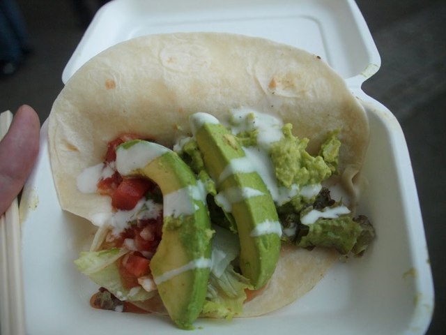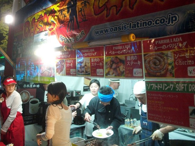 ひとしきり踊ったらまたお腹がすいてきた!というわけでまたもや屋台めぐりの旅にデッパツであります。まずはアボカドタコス、やーっとメキシコ料理にありついた!そして今回食べた唯一のメキシコ料理がこれでした(笑)。でも、アボカドうまい!