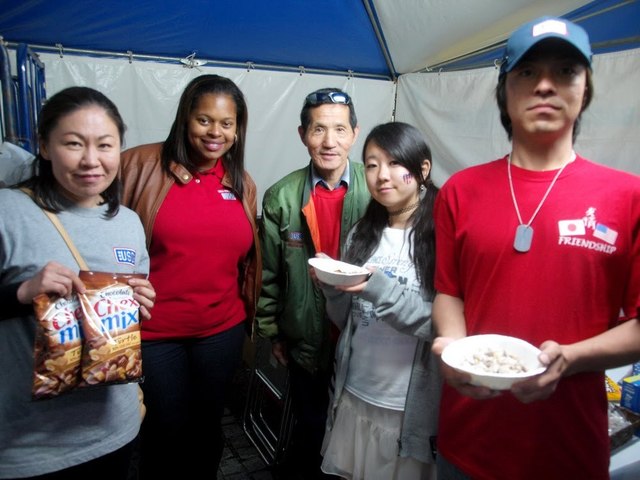 さらにそのお隣のブースでも、ポップコーンやアメリカンなお菓子の販売をしてます。聞いてみると、こちらはアメリカ軍家族をサポートするためのチャリティー団体、United Servie Organization、略してUSOだそうで、「日本語だとウソってなっちゃいますねぇ」って思わず言ったら、ブースのお父さんが「いやいや、ウソじゃなくて本当なんだよ!アメリカではとっても有名なんだよ!」とのことでした。東日本大震災のチャリティーなども行ったそうで、その写真も見せてくれたり、いろいろ説明してくださったり…ありがとうございました!なんかみんないい人だなぁ…。