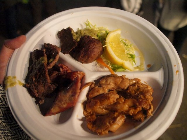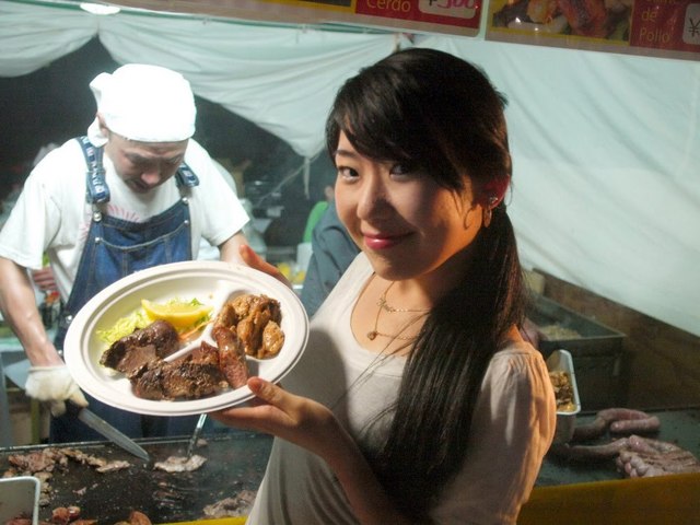 そしてそして、まだまだガツンと肉系いっちゃいましょう!今度の屋台は、またペルー料理を出してくれるところらしく…素敵な売り子のお姉さん、一枚お願いします! このプレート、ビーフもポークもチキンもソーセージも盛り合わせ!という一皿だったんですが、この日の優勝プレートでありました(と言っても4つしか食べてないんですが)。まさしく肉ーっ!!という感じの食べごたえで、いやはや満足…。ご馳走様でした!ペルーもいつか行ってみたいなぁ…。