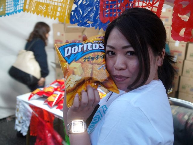 さてさて、ステージから一度離れて、また場内を歩き回ってみましょう。あ、さっき行列出来過ぎでクローズしていたドリトスブースが再オープンしてる!スタッフのお姉さんに聞くと、ドリトスのアンケートに答えるとなんと無料でお好きなドリトス一袋プレゼントという超太っ腹企画だそう!これは鈴木もナチョ・チーズをゲットするしかあるまい!お姉さん、ついでに一枚お願いします!