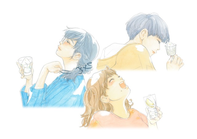 3つのショートストーリーに登場する女性たちは「焼酎の前割り」、「ハイボール」、「ジャスミンティ割」という白岳KAORUに合う3種飲み方をイメージして、ウオズミアミさんがキャラクター設定も含めてデザインしました。