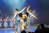 ステージにあるセットが回転すると、ドラムセットとミッキーが登場!