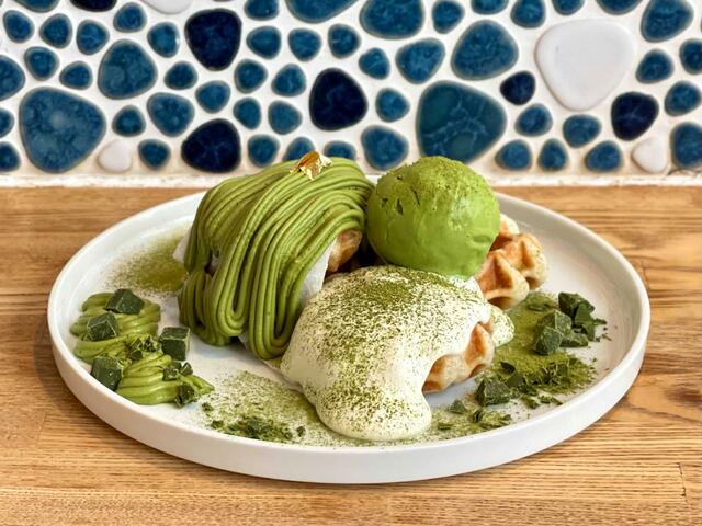 これに濃厚抹茶モンブラン、抹茶アイス、とろーりクリーム、求肥、本格抹茶チョコレートを合わせ、仕上げに抹茶ソースと合わせた贅沢抹茶づくしのワンプレートです。