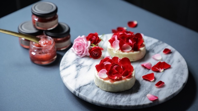 弾ける花びらの素材感と、ジャムから香る上質なバラのアロマが食体験をより上質なものに変えてくれます。