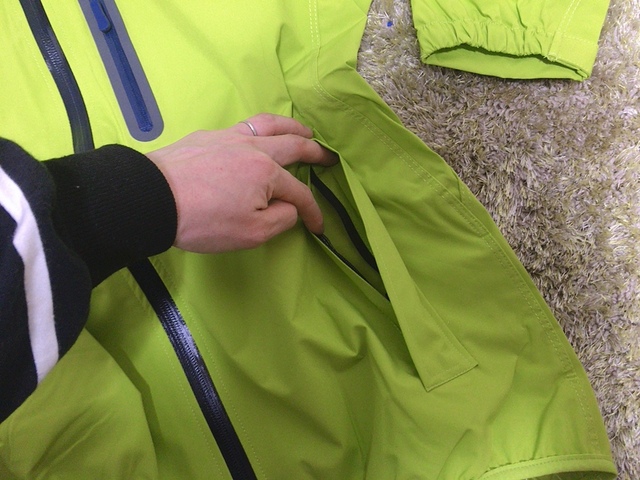 レインジャケットとして特化したアイテムだからか、各ポケットは防水加工のされたファスナーがついていて、両サイドのポケットにはさらにファスナーが隠れる仕様となっています。