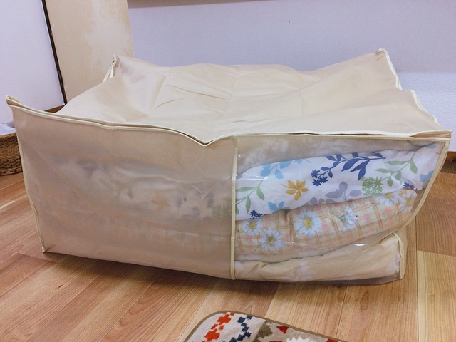 薄手の布団なら敷布団、掛布団、シーツ、毛布、枕、と1セット余裕で収まります。