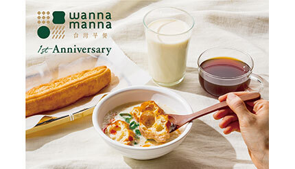 グレイスは4月7日~18日の期間、同社が運営する台湾朝食専門店「wanna manna」(大阪市)が、オープンから1周年を迎えたことを記念した「wanna manna 1st Anniversaryキャンペーン」を実施する。