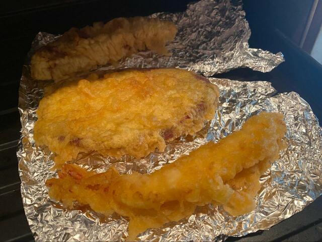 オーブントースターで5分ほど温めます。するとサクサクの天ぷらになっていました!