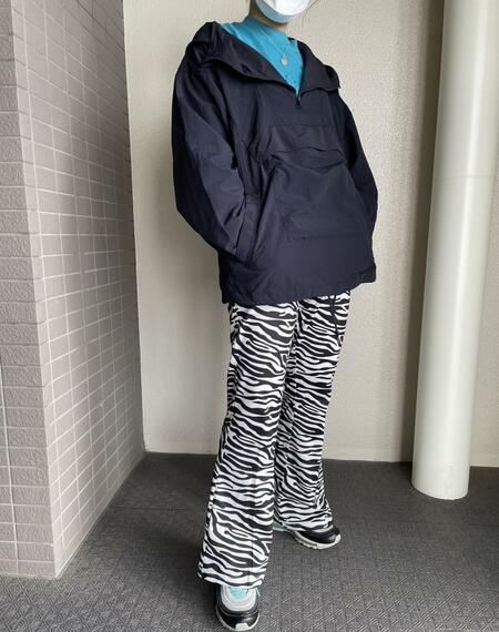 ゼブラ柄のパンツを履き、全体的にストリートっぽくまとめてみました。