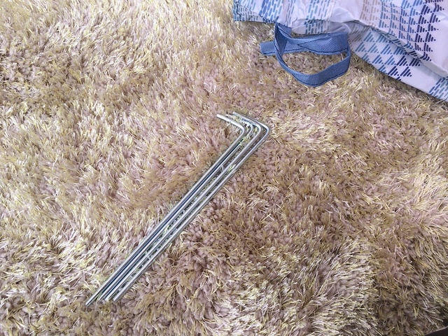 ペグがセットになっていて、地面に固定できます。テントと同じ柄のペグケースもかわいいです。