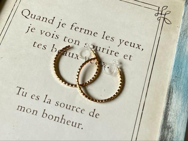 名前の通りフープのように耳に対して縦にゴールドの円を描くように作られています。
