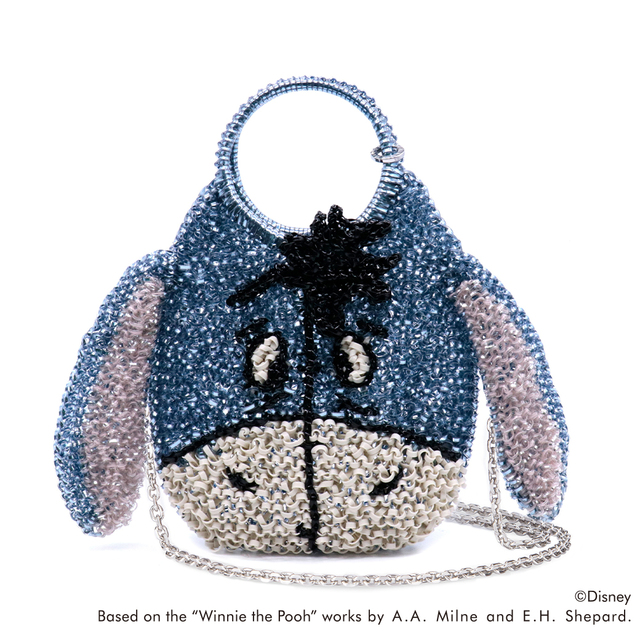 ドロップ型の丸いシルエットがキュートなミニバッグが、そのままイーヨーの顔になりました。