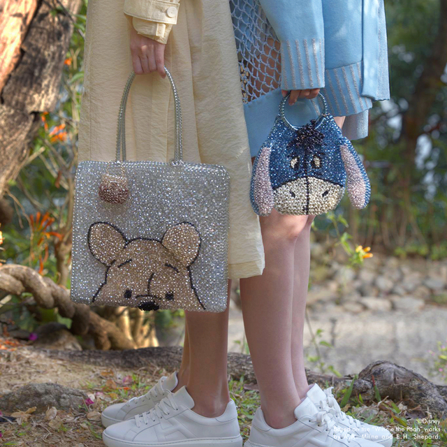 ワイヤーバッグに加え、プーさんには欠かせない「はちみつの壺」と「はち」を表現したバッグアクセサリーも登場。