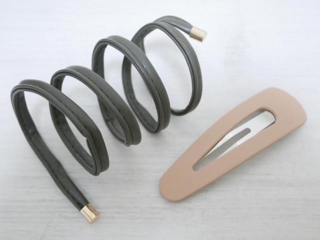 パッチン止めのヘアピンと、ワイヤーが入った細めのリボンのセットです。こちらも簡単にヘアアレンジができるアイテムです。