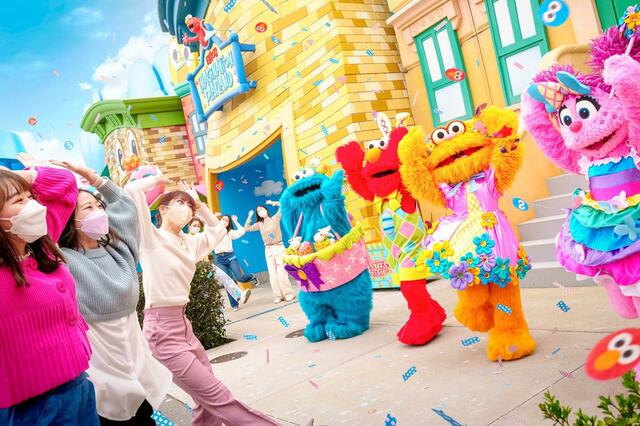 「ユニバーサル・ワンダーランド・イースター・ダンス・ア・ロング」は、スヌーピー、ハローキティ、セサミストリートのエリアが集うユニバーサル・ワンダーランドのグリーティングショー。