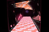 幅約15メートルの巨大LEDモニターと、床面を使ったプロジェクションマッピングにより、一気に異次元に誘われる。ここではレトロゲームやVRゲームなども楽しむことができる。