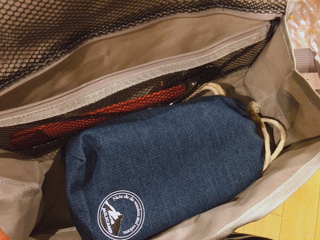 バッグの内側にはメッシュポケットが2つついています。ファスナー付きなので、中でバラバラになることがありません。