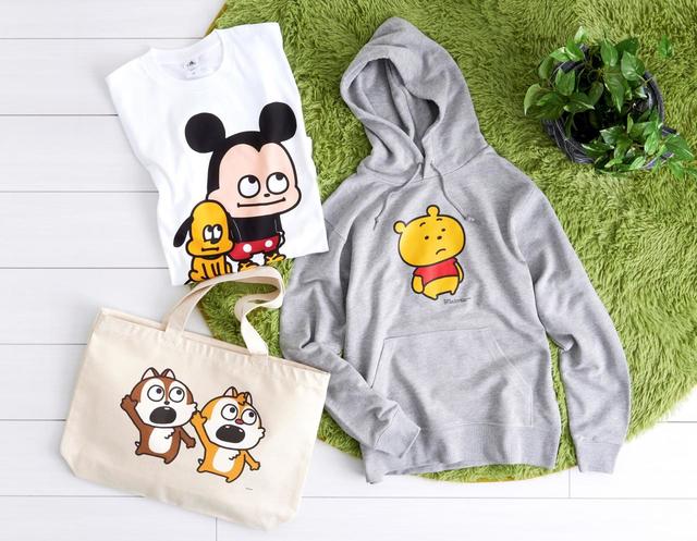 「にしむらゆうじ画♪ミッキー&プルート」、「にしむらゆうじ画♪チップとデール」、「にしむらゆうじ画♪くまのプーさん」のアートが、パーカーやエコバッグ、iPhoneケースなど、毎日使えるアイテムに描かれています。