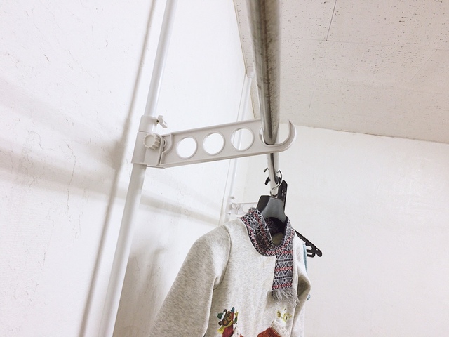寝室の端に室内用物干しスペースを作ることにし、さっそく設置開始。