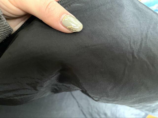 一方はシャカシャカした素材でできています。こちらを表にして着るとスポーティーな印象に!