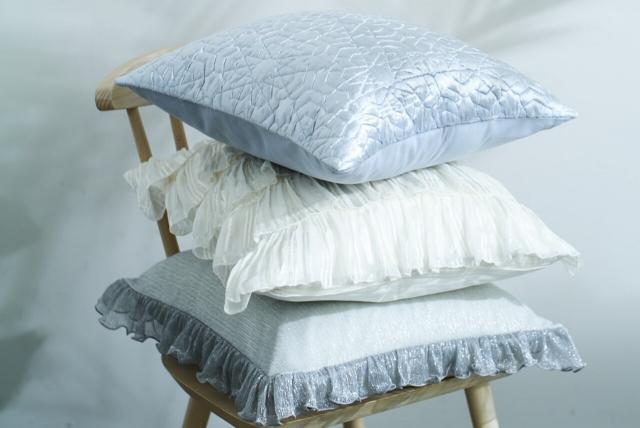 艶感のあるベルベット生地にステッチで柄を表現した無地ライクで取り入れやすいデザインのクッションカバーや、フリル生地に織り込まれたメタリック糸がきらきらと軽やかに揺れるカバーなど、かわいいらしく上品なクッションカバーも種類豊富に登場しています。