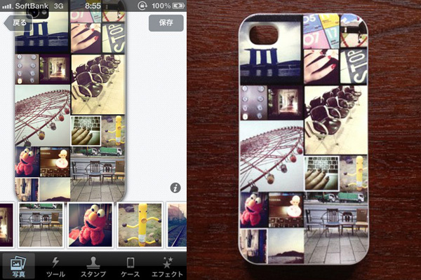 写真プリントサービス「カメラのキタムラ」ではiPhone5ケースを作れます。Webサイト上で12種類のデザインから好きなものを選び、使いたい写真を選択し、デザインにはめ込んでいきます。写真を入れる枠をクリックして、写真を選ぶだけで、自動的にはめ込まれるので簡単です。拡大縮小や上下左右の移動、回転など、細かい調整もできます。注文すると約1週間で届きます。価格も1,980円と市販のすこし凝ったケースと同程度で嬉しいですね。