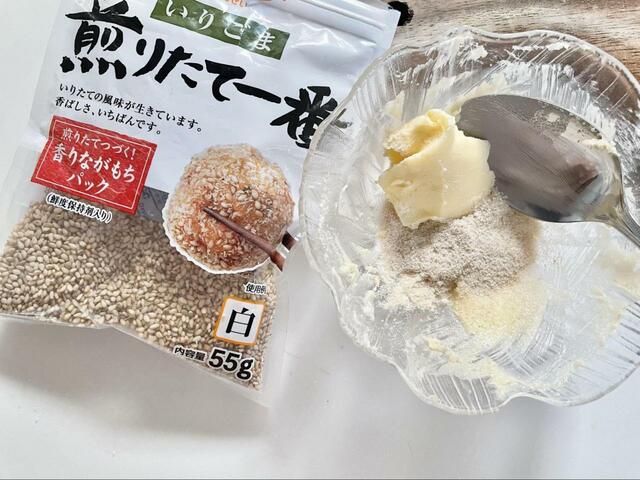 食パン1枚、すりごま大さじ2、バター大さじ1、砂糖大さじ1