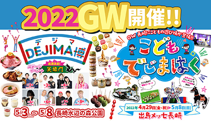 長崎国際テレビは5月3日~8日の期間、全国のグルメやお笑い、音楽ステージなどを楽しめる食と遊びの祭典「DEJIMA博2022」を、長崎水辺の森公園(長崎県長崎市)にて開催している。入場料は、前売が大人500円、子ども(3~12歳)100円、当日が大人700円、子ども200円(2歳以下は入場無料)。