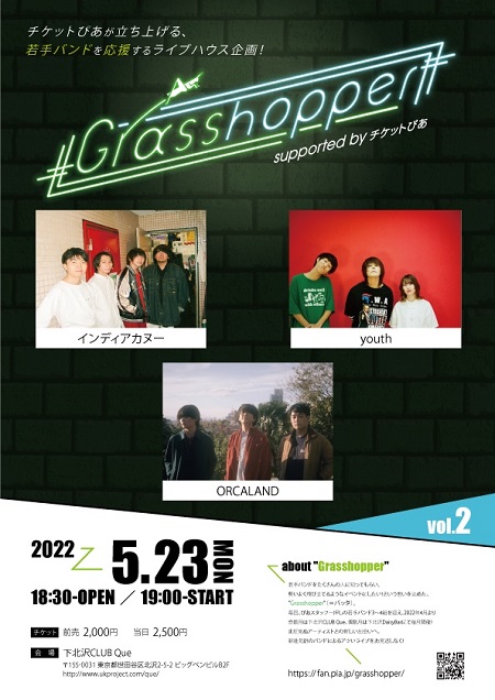 2022年4月より本格始動したチケットぴあ主催の若手バンドを応援するライブハウス企画「Grasshopper supported by チケットぴあ」。
