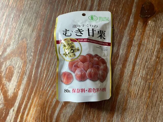 コンビニで買うと少し高いイメージもあるむき甘栗。こちらもダイソーで購入することができました。電子レンジなどで温めても美味しいようですが、もちろんそのままでも食べられます。