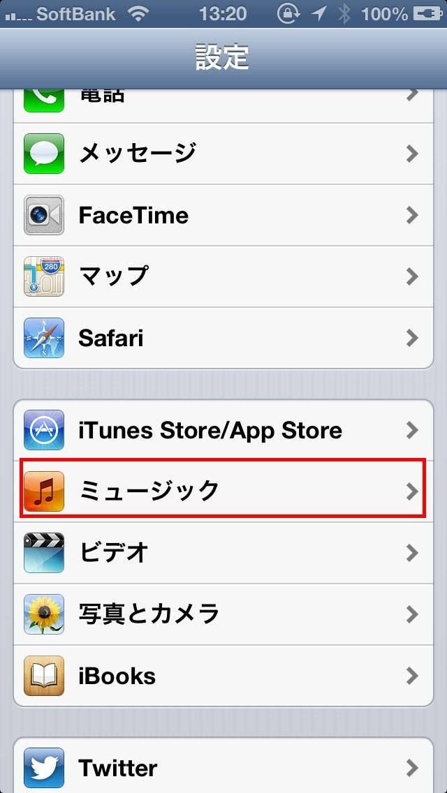 iPhoneの「ミュージック」の設定