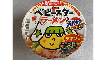 カップラーメンの大ヒット商品「スーパーカップ1.5倍」と、スナック界のビッグネーム「ベビースターラーメン」がコラボ! 「スーパーカップ1.5倍 ベビースターラーメン チキン味」というなんとも分かりやすいネーミングで5月2日に発売された。そこで今回は、幼少期にお腹が空いたとき、ベビースターをお湯でふやかして食べていた可哀想な筆者が、ノスタルジーな気分に浸りながらこの商品を実食! その魅力をお伝えしよう。