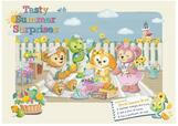 ダッフィー&フレンズが暑い夏にさわやかなジュースを飲んでのんびり過ごす様子をデザインした「ダッフィー&フレンズのテイスティ・サマー・サプライズ」が初登場。